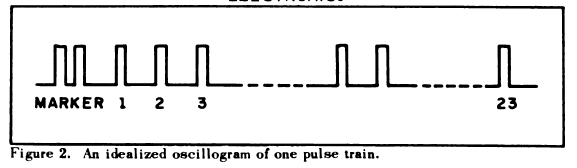 The method of deriving the pulse train and modulating the pulses is simple and unique. A phase shift oscillator is used, with 24 sections in the network. The signal at each section is a sine wave displaced 15° from its neighbors. If the sine wave is biased positively and a pulse is generated at the instant of zero voltage, that pulse will lag the one generated when no bias is applied. In this equipment, the bias is the modulating signal. The method is shown in figure 5. It is apparent that the pulse illustrated in figure 5b occurs earlier in time than that shown in figure 5a. A negatively biased sine wave would generate a pulse later in time than that shown in figure 5a, as shown in figure 5c. The technique requires only one tube for an oscillator, and one for the pulse generator. Since these tubes could be replaced by transistors, a very small package can be obtained.