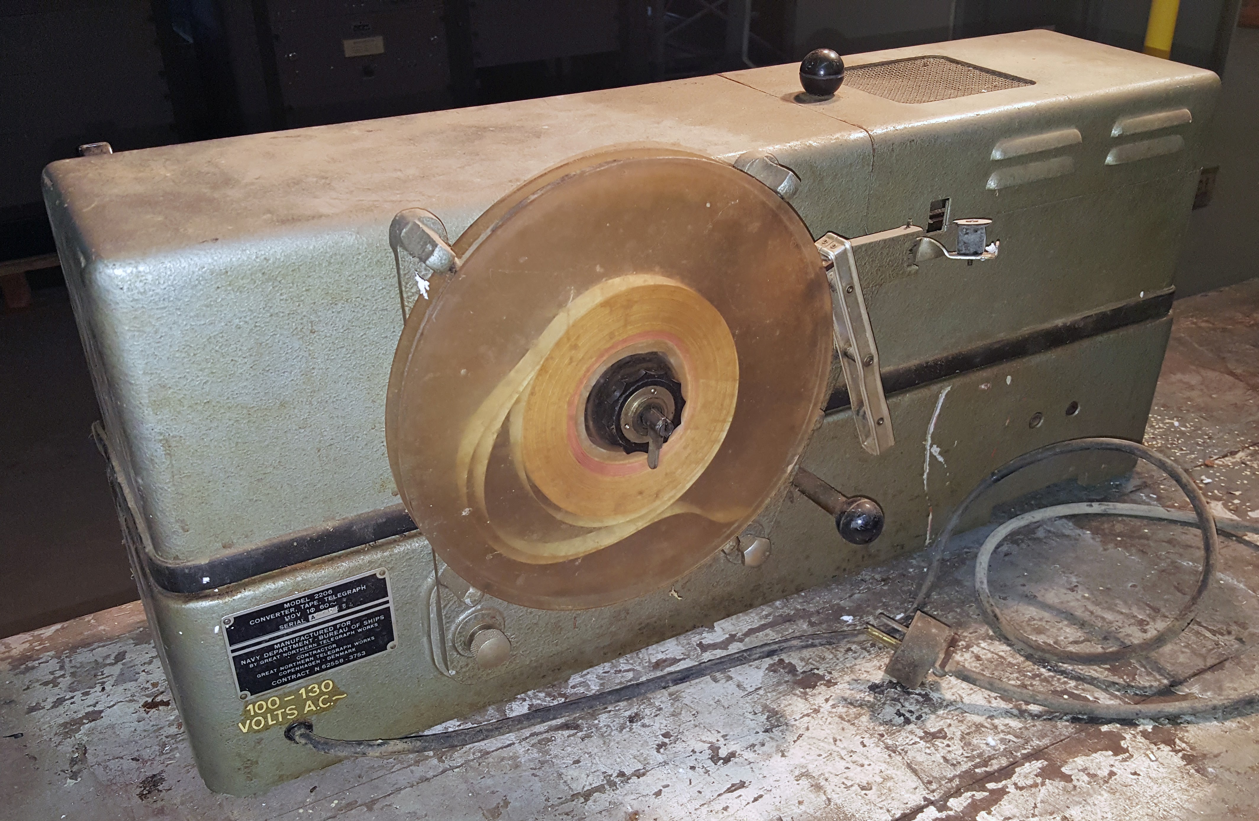tape reader (tape head) that in operation sends Morse coded signals to a