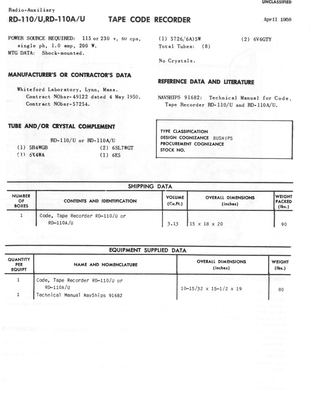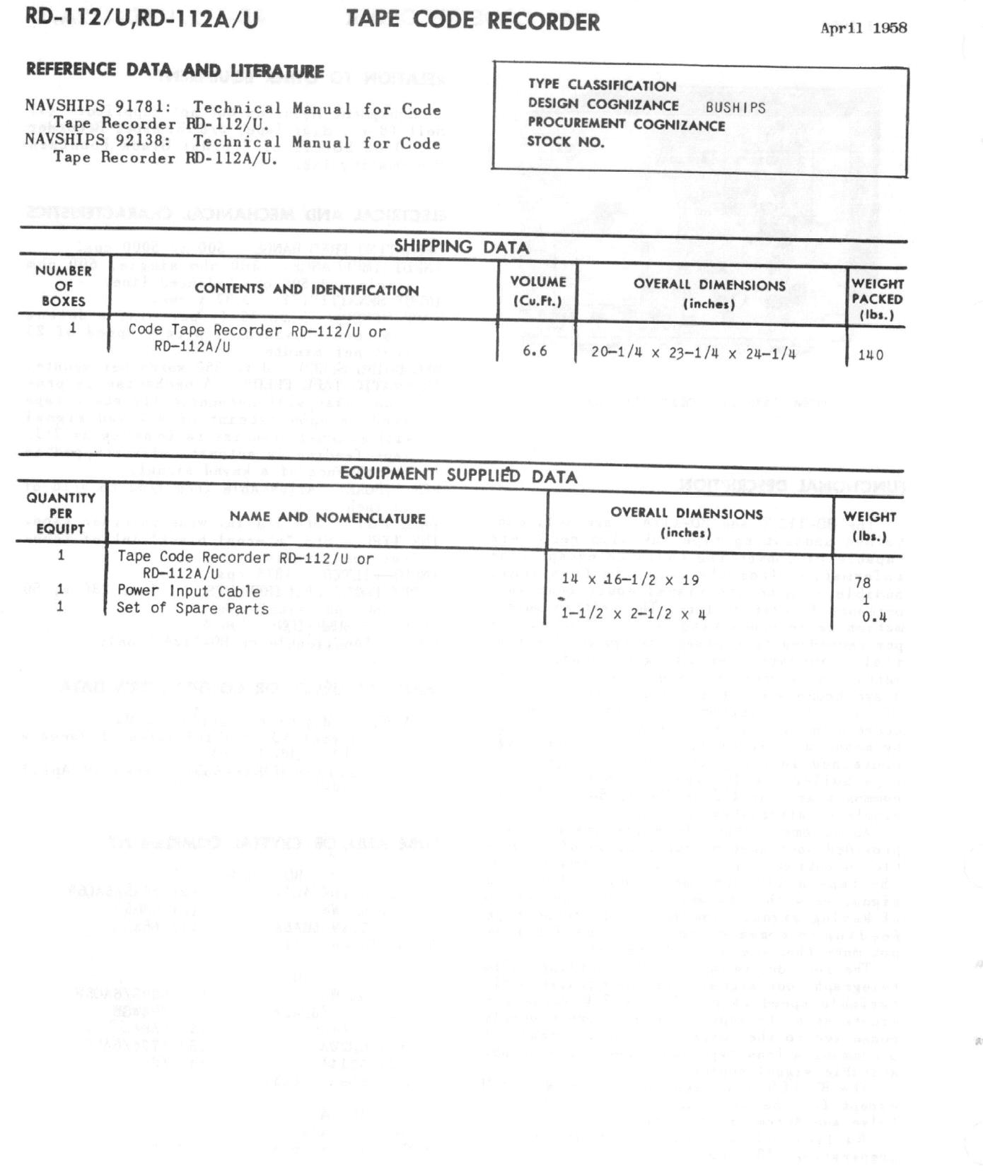 Manf by McElroy - 1954 RD-112/U - NAVSHIPS 91781 |