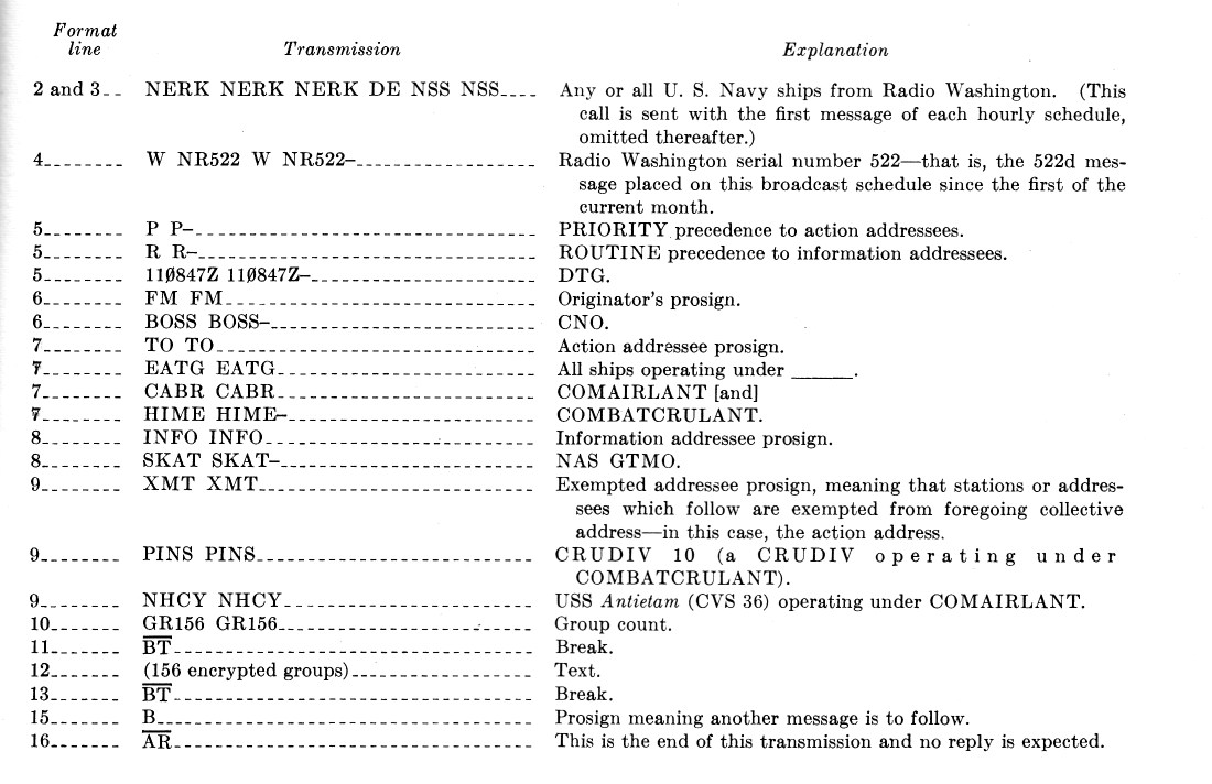 | 6 | FOPI | Special traffic channel (NAVSECGRU) |