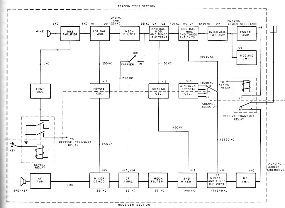 2-12 mc AM/CW 10 crystal controlled channels 15-20 watts output |
