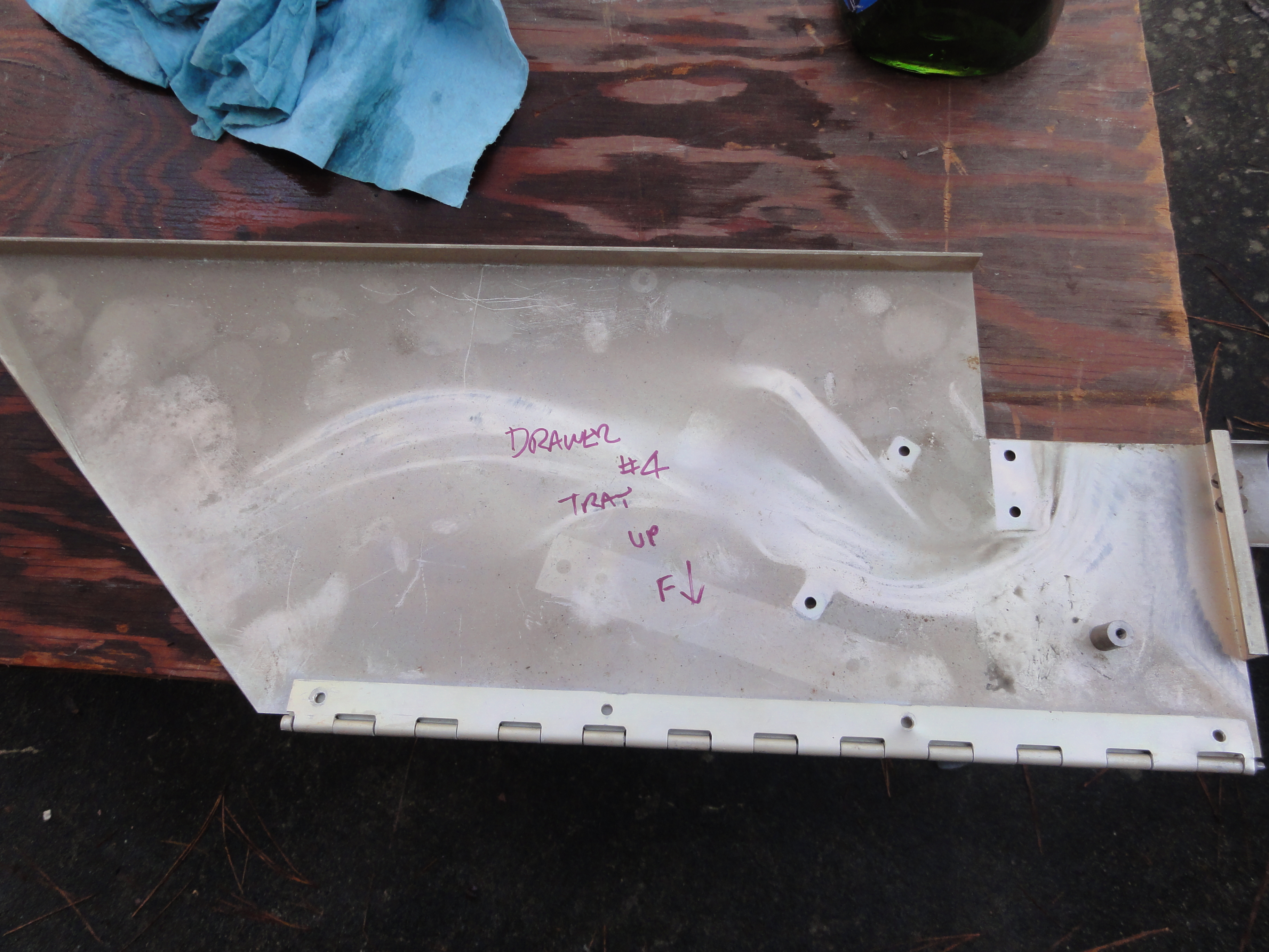 cleaning on the drawers and slides, removing mouse pee & poop, acorns,