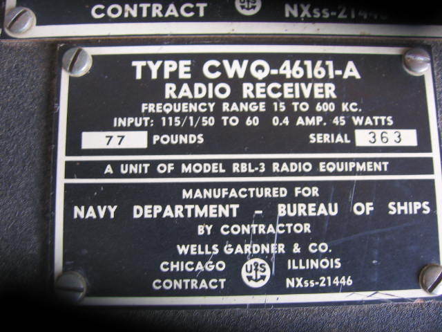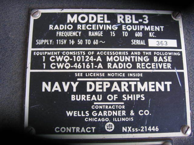 RBL-3 had concentric antenna connector (plug is Navy Type 49121 or 49121A)