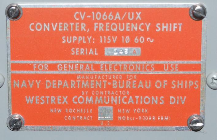 AFSK receiving converter 1500-2300 cps input for use with RD-92/UX and TT-41B/TXC-1 fax recorders |